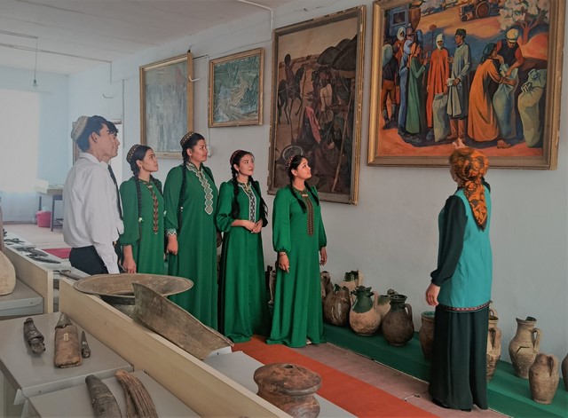 etmäne gelýärler. Okuwçylar muzeýe gezelenç etmek bilen obanyň taryhy